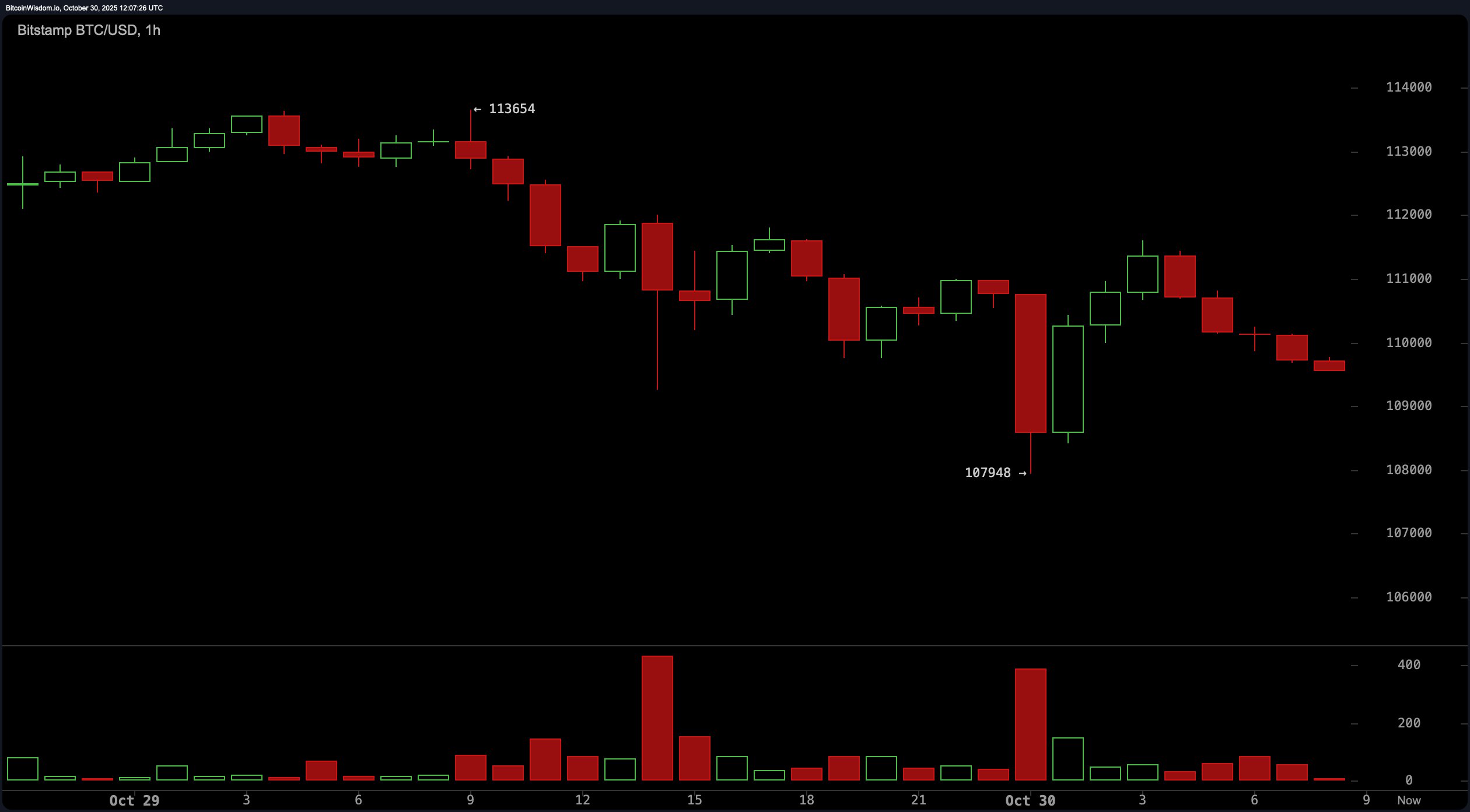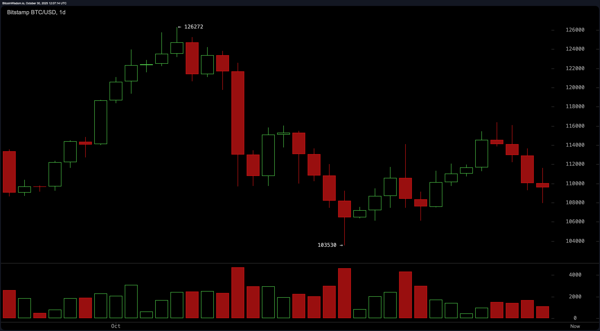 Bitcoin торгуется по цене $109,769 по состоянию на 30 октября 2025 года.